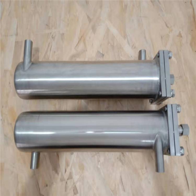 冷卻水從底部進入,流過內盤管和外盤管兩個流程,冷卻水通過內盤管中間導向管引至法蘭面,