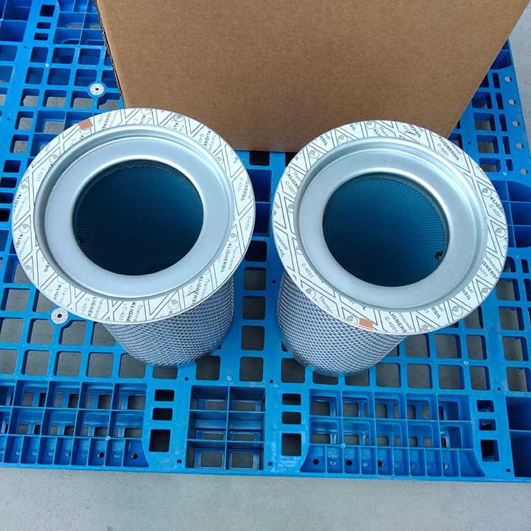 油氣分離元件是決定空壓機壓縮空氣品質的關鍵部件,高質量的油氣分離元件不僅可保證壓縮機的高效率工作,且濾芯壽命可達數千小時。從壓縮機頭出來的壓縮空氣夾帶大大小小的油滴,大油滴通過油氣分離罐時易分離,而小油滴(直徑1μm以下懸浮油微粒)則必須通過油氣分離濾芯的微米級玻纖濾料層過濾。油微粒經過濾材的擴散作用,直接被濾材攔截以及慣性碰撞凝聚等機理使壓縮空氣中的懸浮油微粒很快凝聚成大油滴,在重力作用下油凝聚在油分芯底部,通過底部凹處回油管進口返回機頭潤滑油系統,從而使壓縮機排出更加純凈無油的壓縮空氣。壓縮空氣中的固體粒子經過油分芯時滯留在過濾層中,這就導致了油分芯壓差(阻力)不斷增加。隨著油分芯使用時間增長,當油分芯壓差達到0.08到0.1Mpa時,或者壓縮空氣出口產生明顯的含油量時,濾芯必須更換,否則增加壓縮機運行成本(耗電或耗油)。
