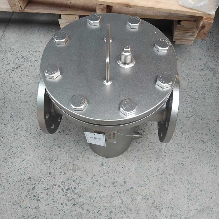 籃式過濾器主要由接管、筒體、濾籃、法蘭、法蘭蓋及緊固件等組成。當流體進入有一定規格的濾網的濾桶后,其雜質被阻擋,而清潔的濾液則由過濾器出口排出,當需要清洗時,只要將可拆卸的濾桶取出,處理后重新裝入即可,因此,使用維護極為方便。籃式過濾器具有結構簡潔,阻力小,排污方便等特點。適用介質可為水、油、氣。一般通水網為18~30目,通氣網為40~100目,通油網為100~480目,可按用戶要求制作濾網,介質溫度:≤200℃。